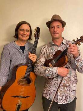 We’ll also be entertained by a string duo: Tim Wetmiller on violin and Elena DesLisle on guitar playing a mix of classically oriented jazz, bluegrass and Latin music.