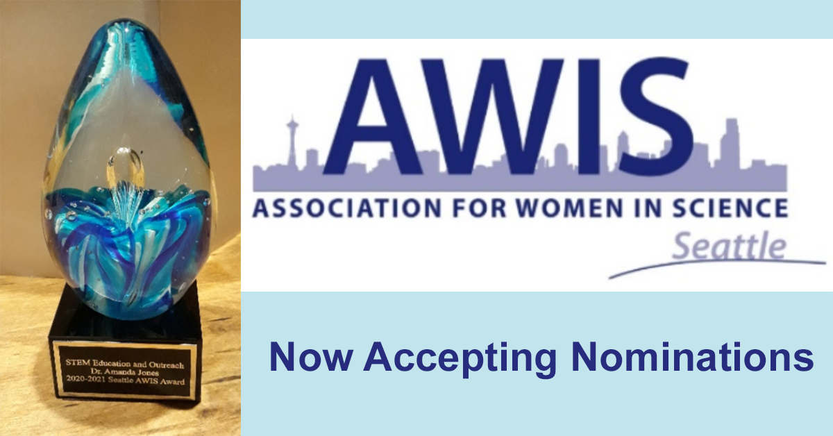 Nominate a woman for one of the 2022 Seattle AWIS Awards! The 2022 Seattle Association for Women in Science (AWIS) Award Categories are
